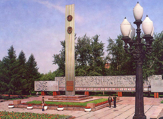...в каждом нормальном советском городе такая имеется, разница только в размерах и степени пафосности. Вот в Златоусте стоит на ул. Грибоедова, на продолжении Миасского тракта то есть, скромный такой памятный знак с орденом Октябрьской Революции. Из нержавейки, конечно, это ж Машзавод :) В Челябинске я вообще не припомню ничего такого. В Березниках было когда-то невероятно офигенное деревянное панно, а теперь сплошной сайдинг, простигосподи. В Ёбурге вроде на углу Свердлова и Чкалова тоже что-то такое стоит.