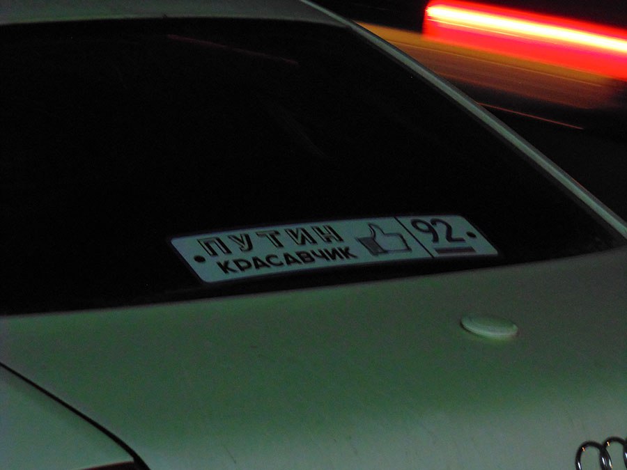 Такую рамку для номера видел, а тут наклейка