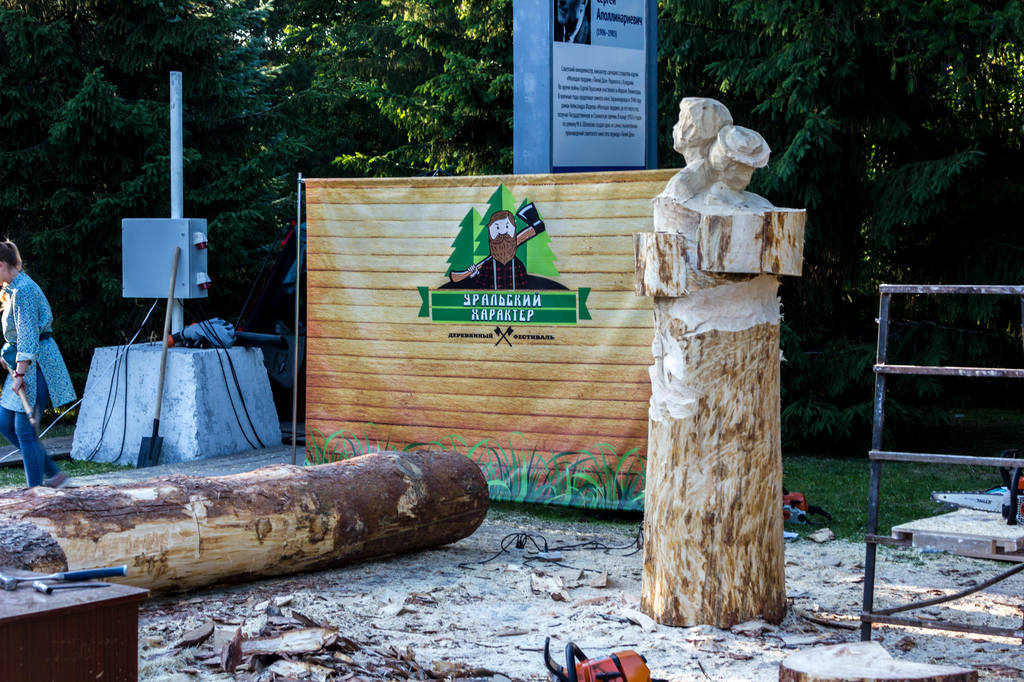 Оказывается, начался фестиваль деревянной скульптуры - но только начался, готово будет к четвергу где-то