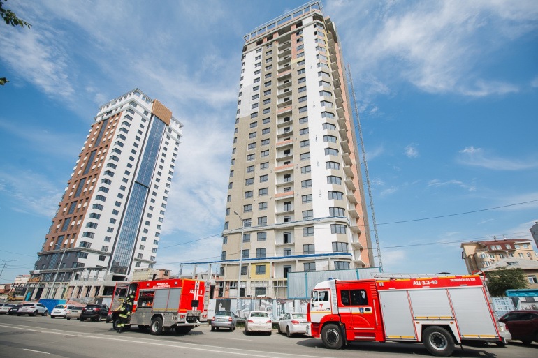 Испытания пожарной техники проходили в строящемся жилом комплексе «Башня Свободы». ЖК на улице Труда оборудован современной системой пожарной безопасности, включающей системы противодымной защиты и пожаротушения.