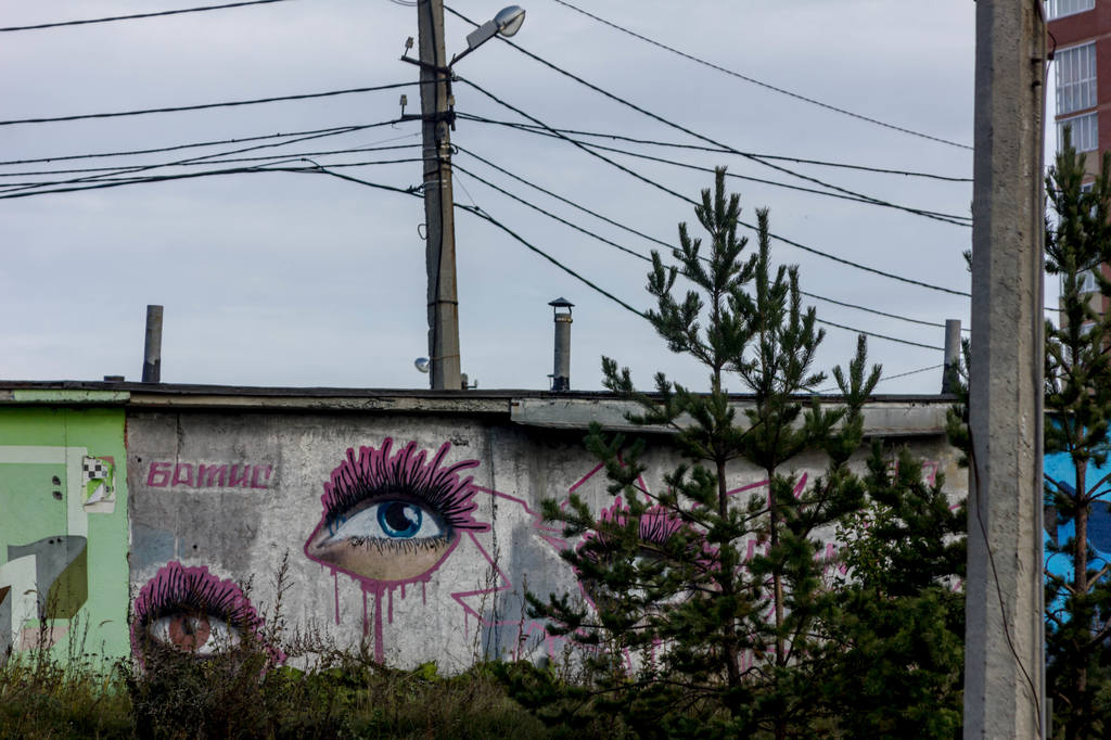 На гаражах интересные граффити попадаются
