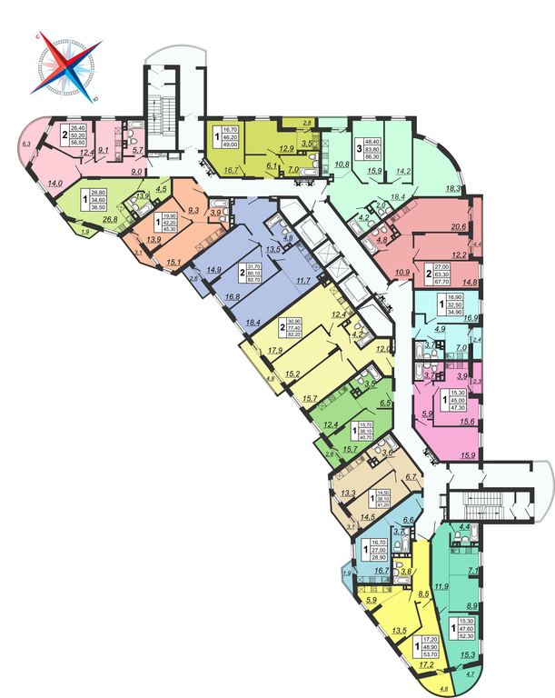 На магнитостроевском же сайте выложили планировки квартир - ну что, на любителя, конечно. И да, однокомнатные по краям так и просятся, чтоб их объединить