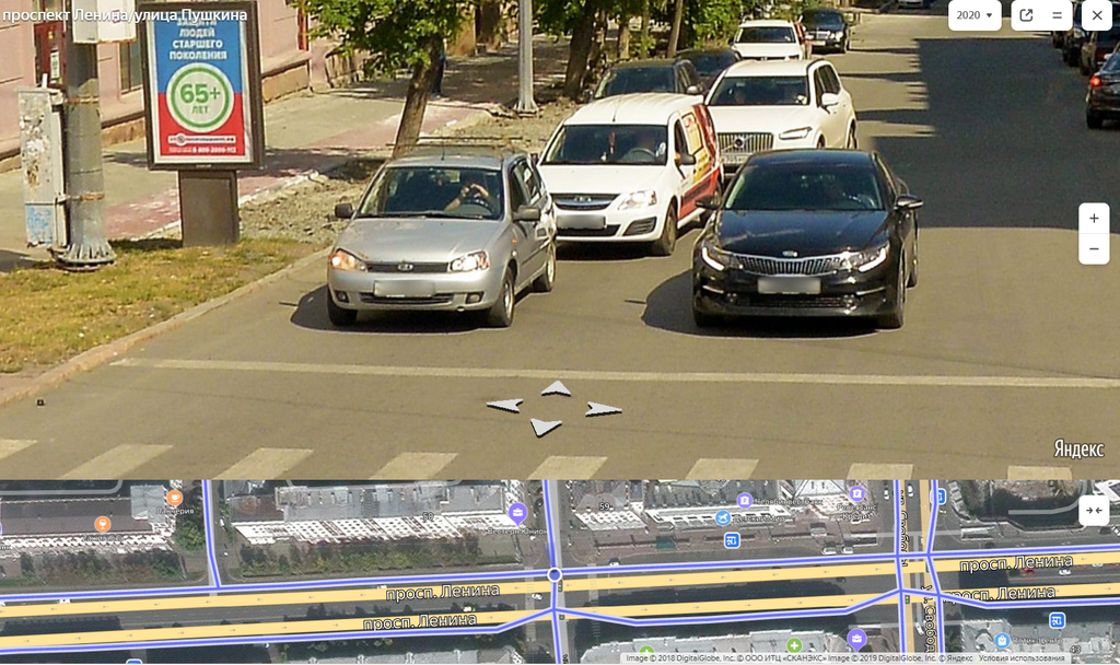 ...проскочил по развязке и на перекрёстке Пушкина и Ленина встретил вот это. Так что скоро моя машина и я в ней появимся на Яндекс.Картах