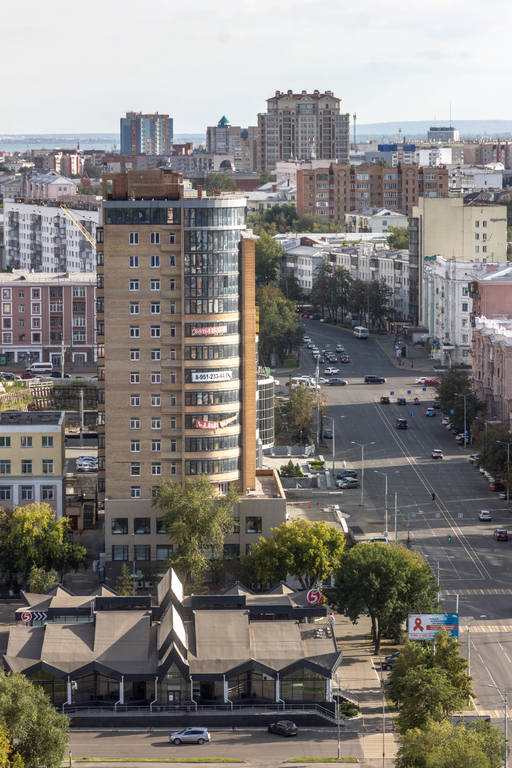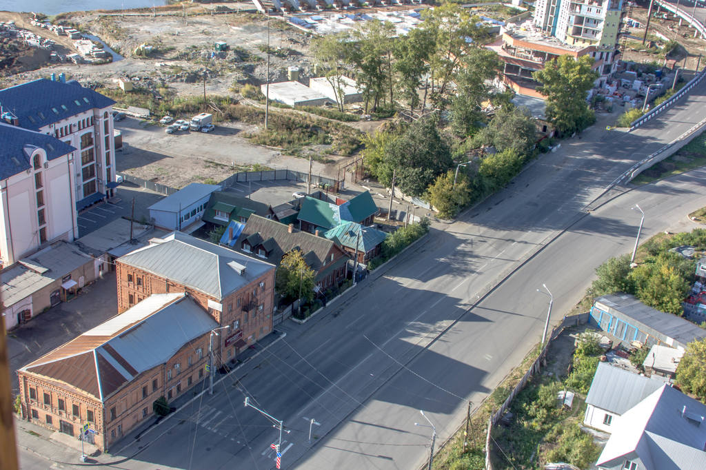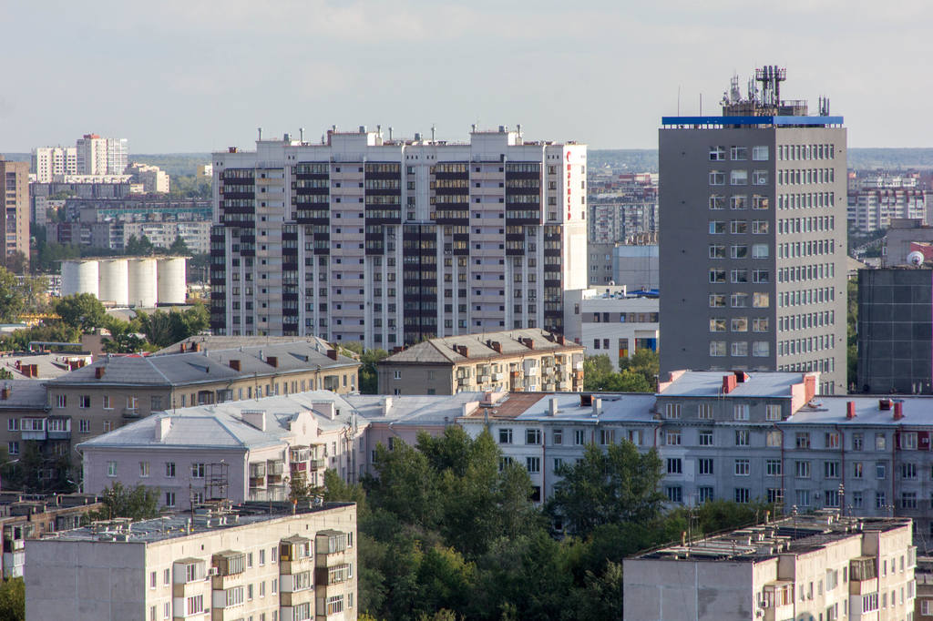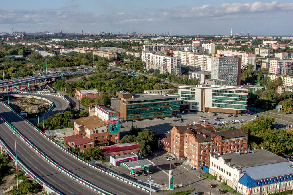 В сторону бывшего Танкового - видны БЦ на Орджоникидзе, и дома EVOпарка. А на первом плане Дорожная больница