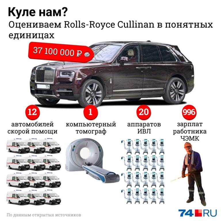 Наши читатели устали от негативного фона публикаций: то коронавирус, то самоубийство, то рыжий дым. А для Челябинска очень нужны хорошие и ободряющие новости. К счастью, сегодня у нас именно такая: один из олигархов купил себе новый Rolls-Royce Cullinan за 37 миллионов рублей. Этим он заставил умолкнуть критиканов, которые утверждают, будто в городе не появляется ничего нового и современного.