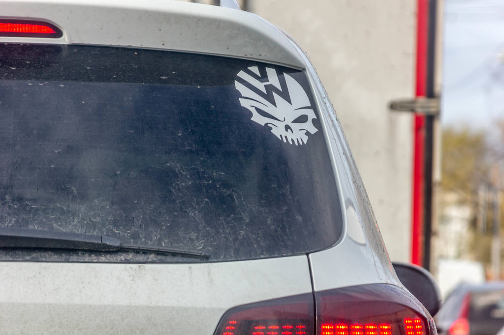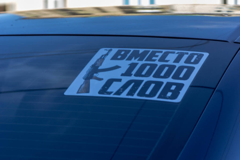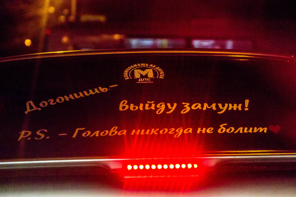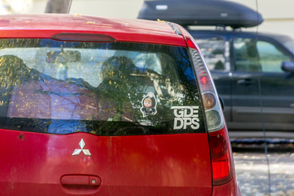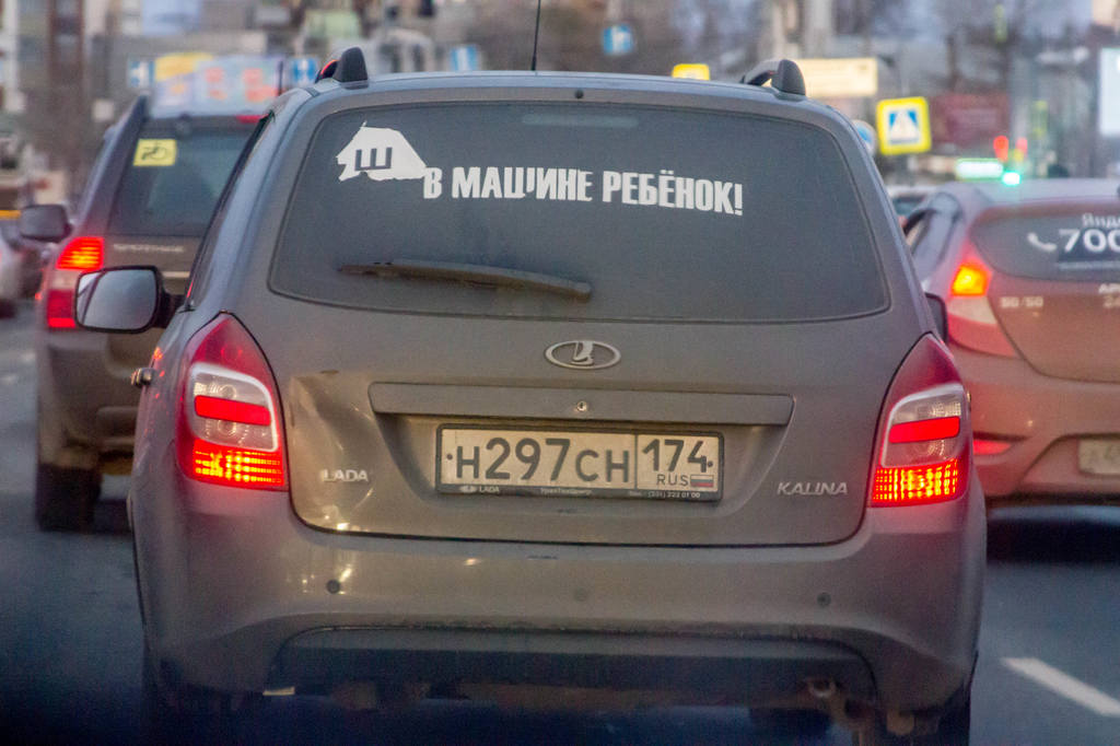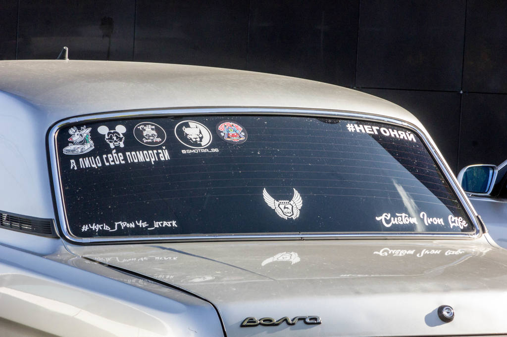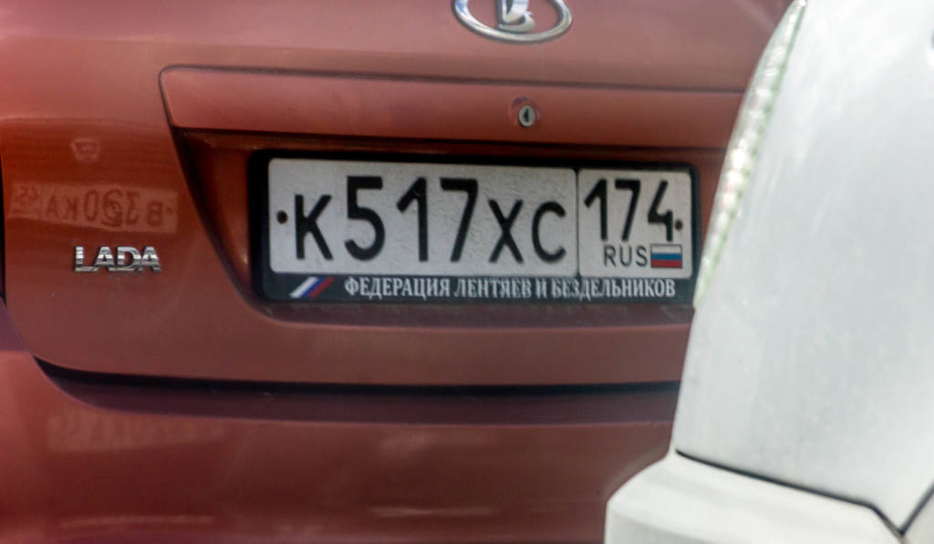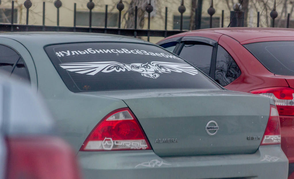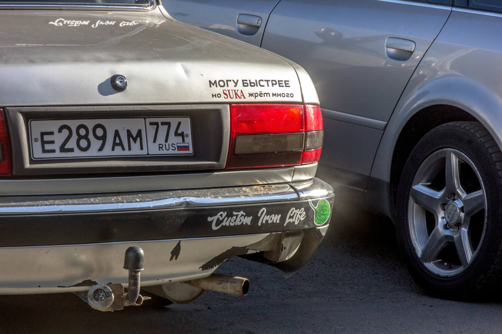 А вот за такое, с открытым матерным текстом, я бы наказывал. Там ещё поллобовухи чем-то таким нецензурным заляпано, уже угрожающего характера, но отснять не получилось - в машине сидел хозяин :) Это в Оренбуржье нормально - там гаишников на улице почти не видно, у нас бы живо захомутали за оскорбление общественной нравственности :)