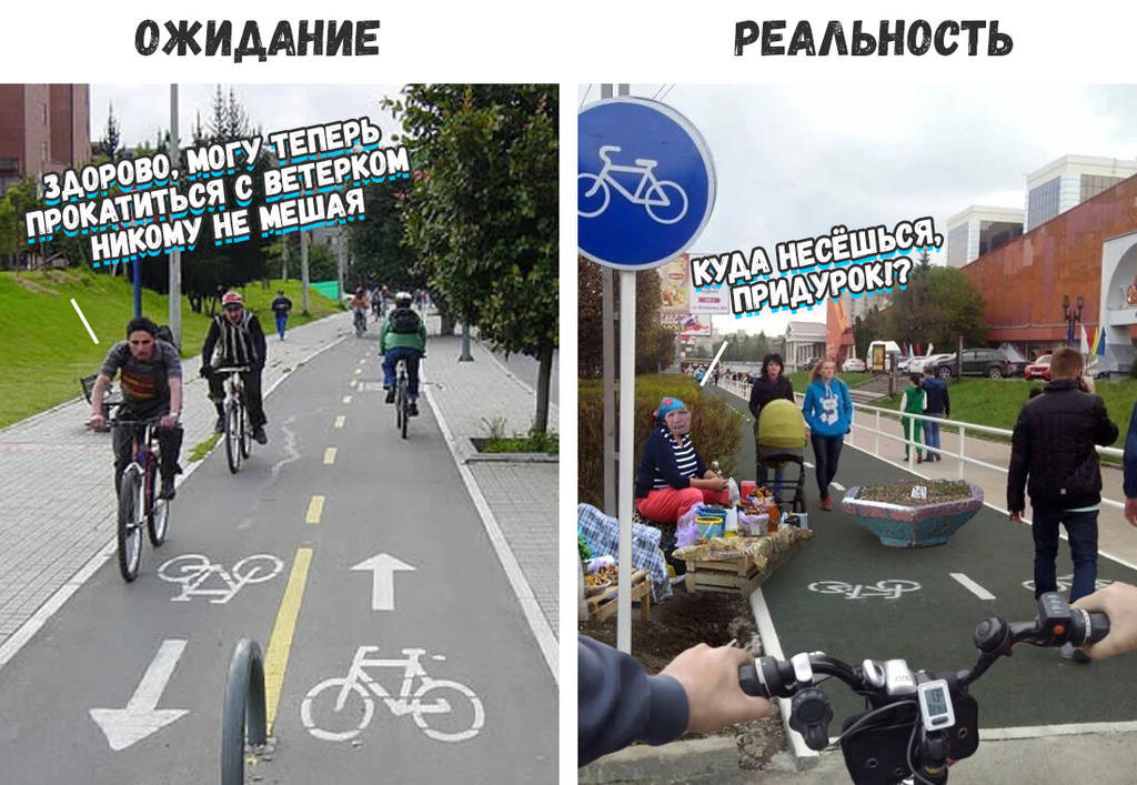 Клумбы, может, и не ставят, но пешеходы не очень различают и не понимают, зачем там какие-то велосипедики на их тротуаре нарисовали