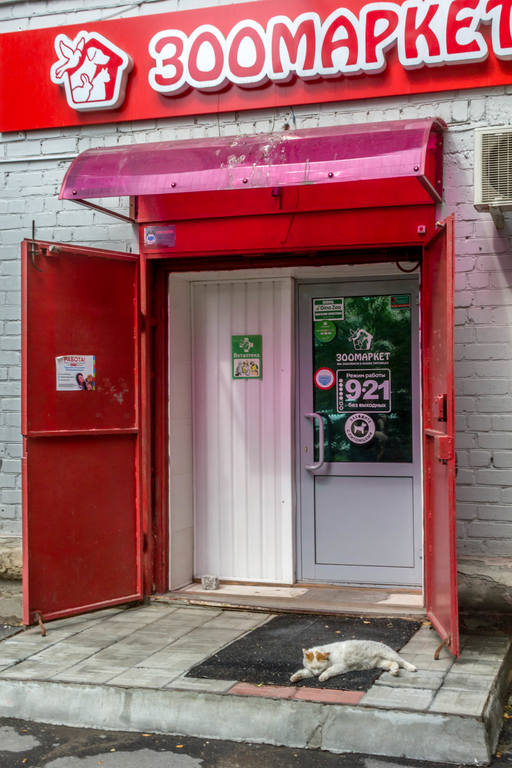Котик из зоомагазина на Доватора, живёт он тут, а кормится во всех окрестных точках :)