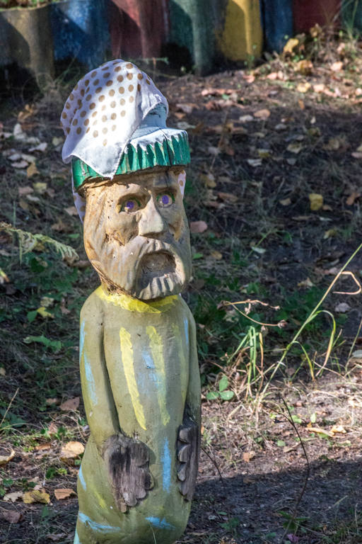 Ладно, едем дальше в сторону Кузнецкого - смотрю, вполне советского вида ворота базы отдыха с советским же названием "Прибой". Ну что, машину поставил на дороге в тени сосен, заходим - никаких охранников в тапочках, да и будки никакой. Мы уж и заплатить готовы были за право окунуться в волны - но некому! На территории опять же советского вида простецкие домики, но чисто и прибрано. И гномики деревянные