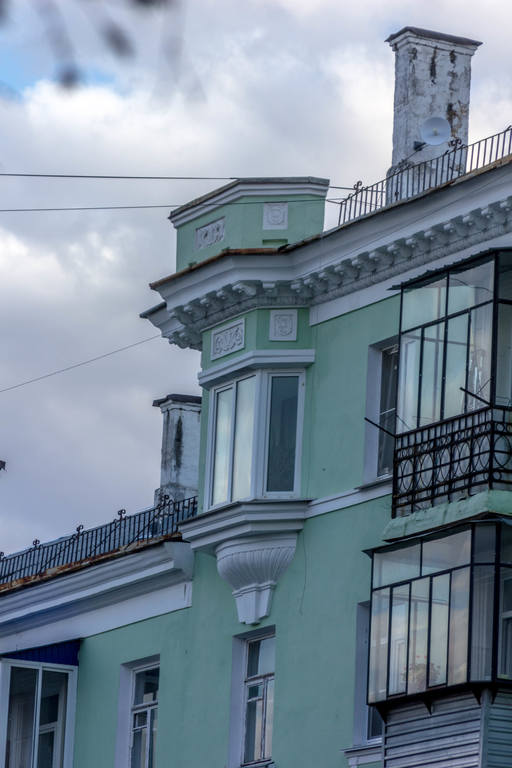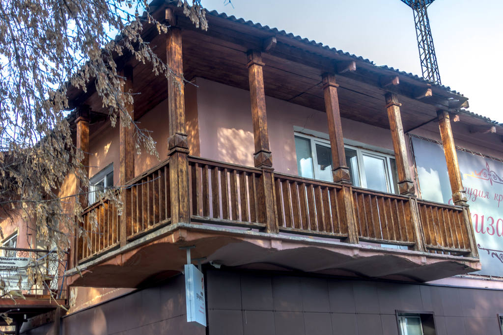 Потрясающие детали!! Деревянные балконные ограждения (при том, что сами балконы вполне основательные)