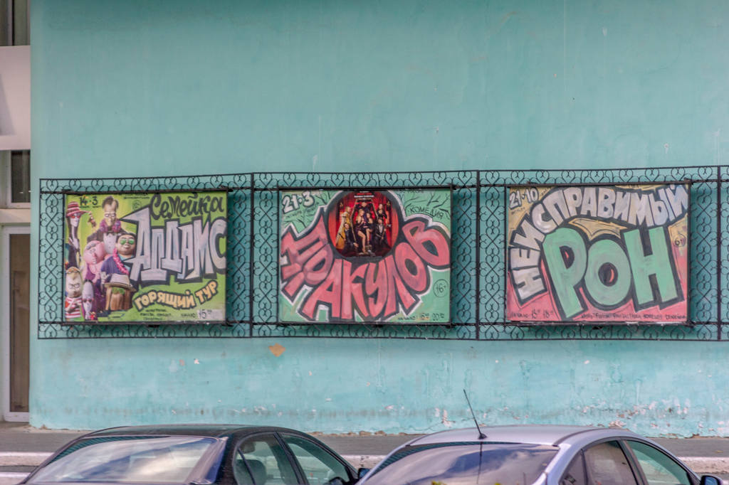 А ещё тут вполне рабочий кинотеатр "Волна" и рукописные афиши!!! Почти как в детстве