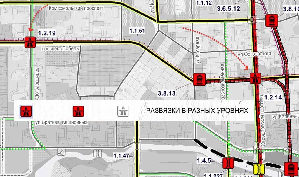 Подозрительная магистраль в районе Зелёного рынка и продолжение трассы с новой развязки в сторону ул. Бажова