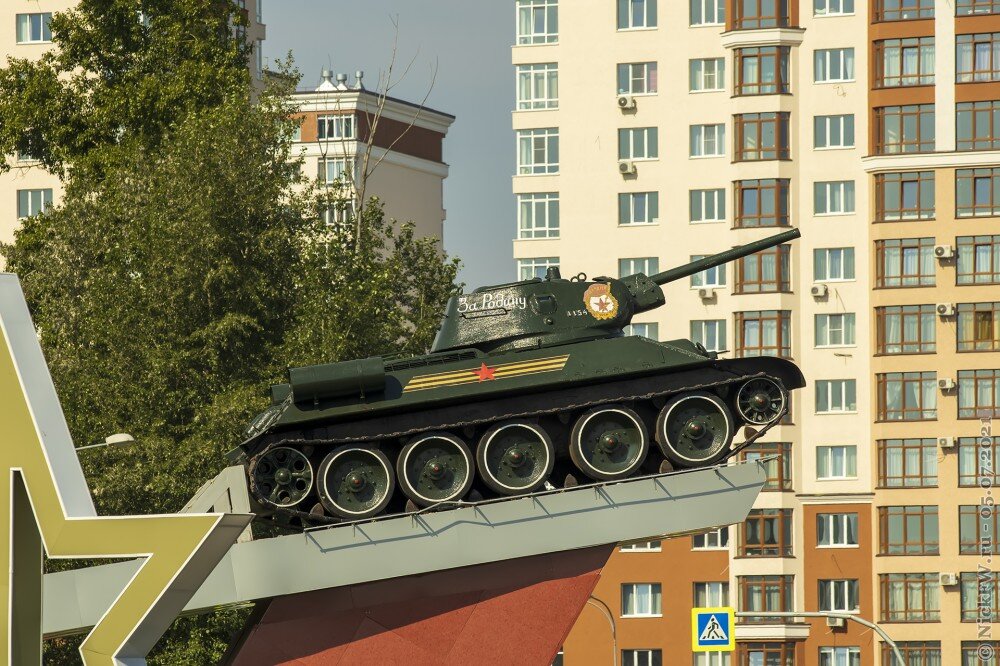 И танк напротив, в кольце дорог на пересечении с бульваром Строителей