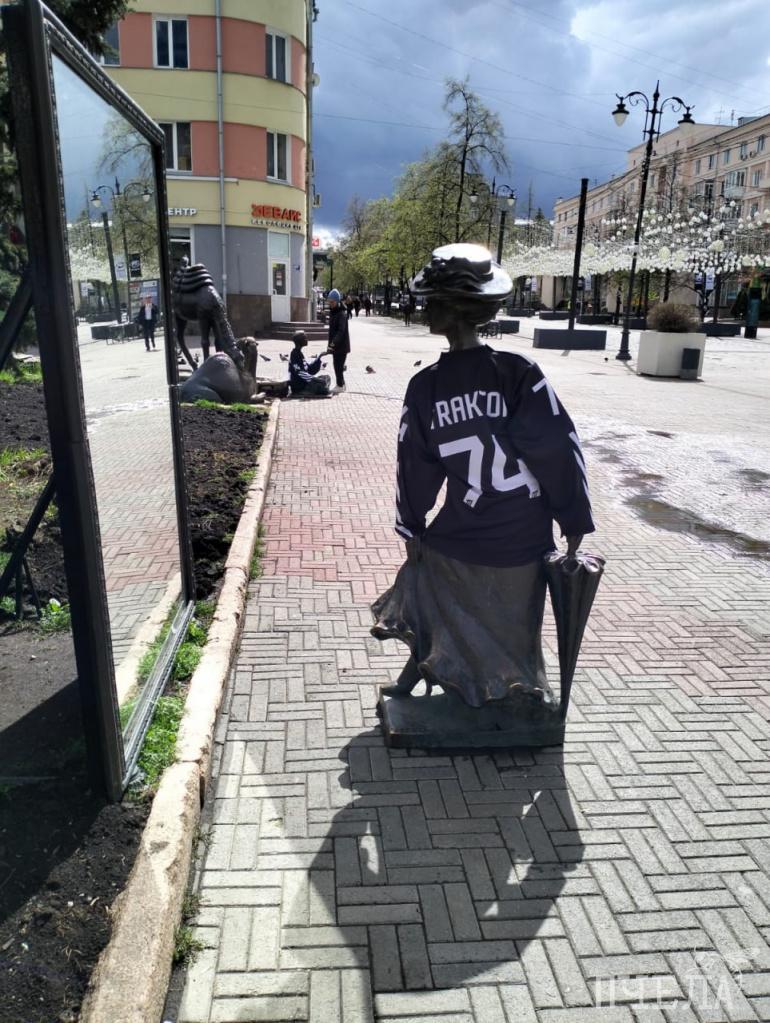 Писали, что скульптурки на Кировке обрядили всвященные одежды тракторовские свитера, но я уже этого не застал. Остались только перетяжки на балконах